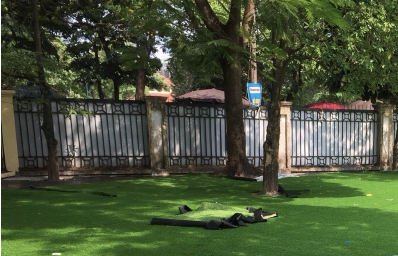 Cỏ nhân tạo sân vườn: chiều cao 18mm, 130 mũi/m, màu xanh. 2x25m/ cuộn. 1.2kg/m2 (giá xuất lẻ cộng 5k/m2)