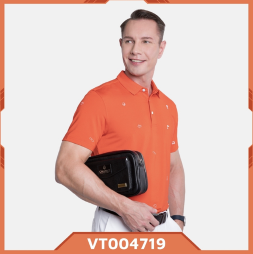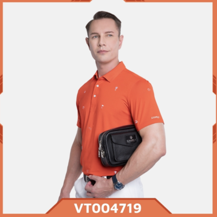 Áo cộc tay nam Charly S23 cam đỏ thêu họa tiết VT004719